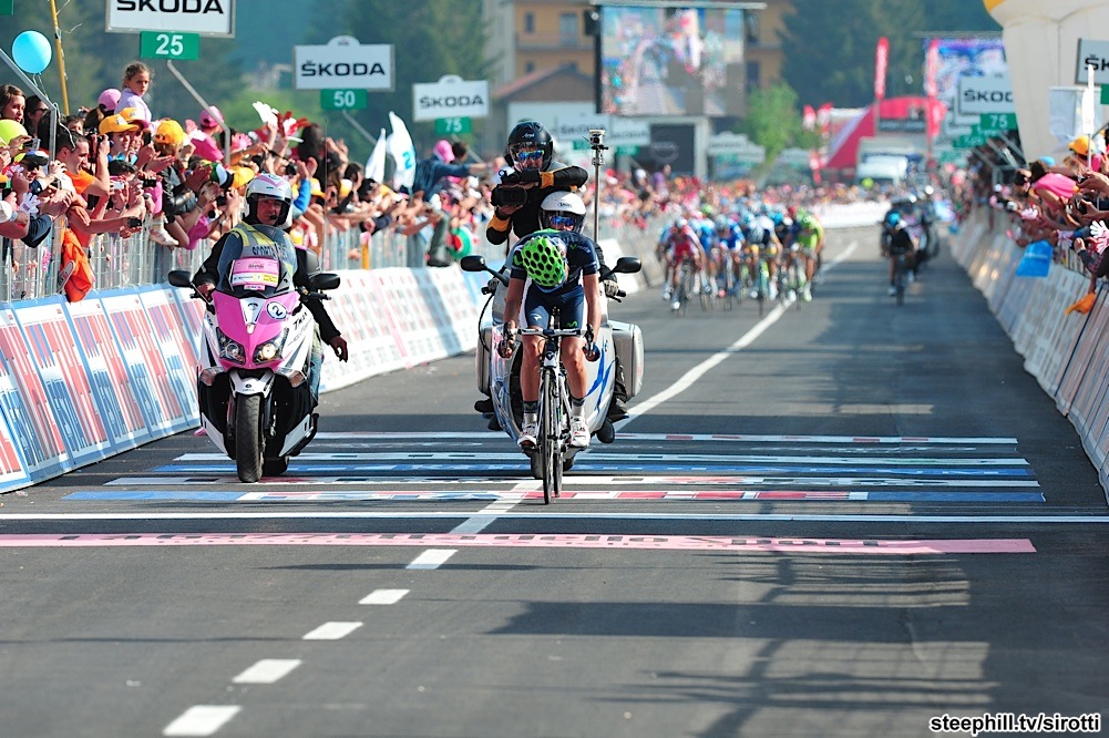 Domenico Pozzovivo tiếp tục giữ vững phong độ cao vừa giúp anh vô địch Giro del Trentino hồi tháng 4 vừa qua khi là người chiến thắng tại chặng 8 Giro d'Italia 2012. Tấn công nhóm tay to mặt bự tại 7km trước đích, tay đua người Ý nhanh chóng tạo lập khoảng cách 30'' và giữ vững lợi thế đó khi về đích bất chấp mọi nỗ lực truy đuổi của tay đua về nhì Beñat Intxausti(Movistar).