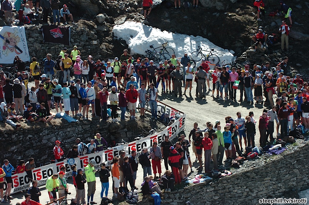 Đông đảo các fan sẵn sàng để chào đón peloton trên đoạn đường không trải nhựa dài 9 km ở đỉnh