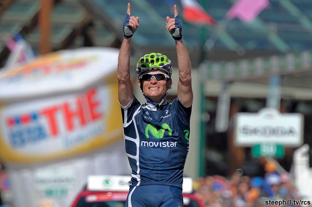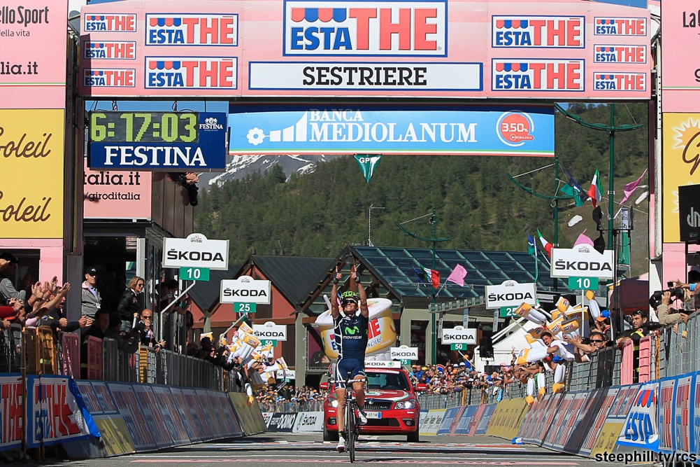 Vasili Kiryienka (Blr/Movistar Team) solo cả hai đèo Finestre và Sestriere và giành 1 chiến thắng hoành tráng