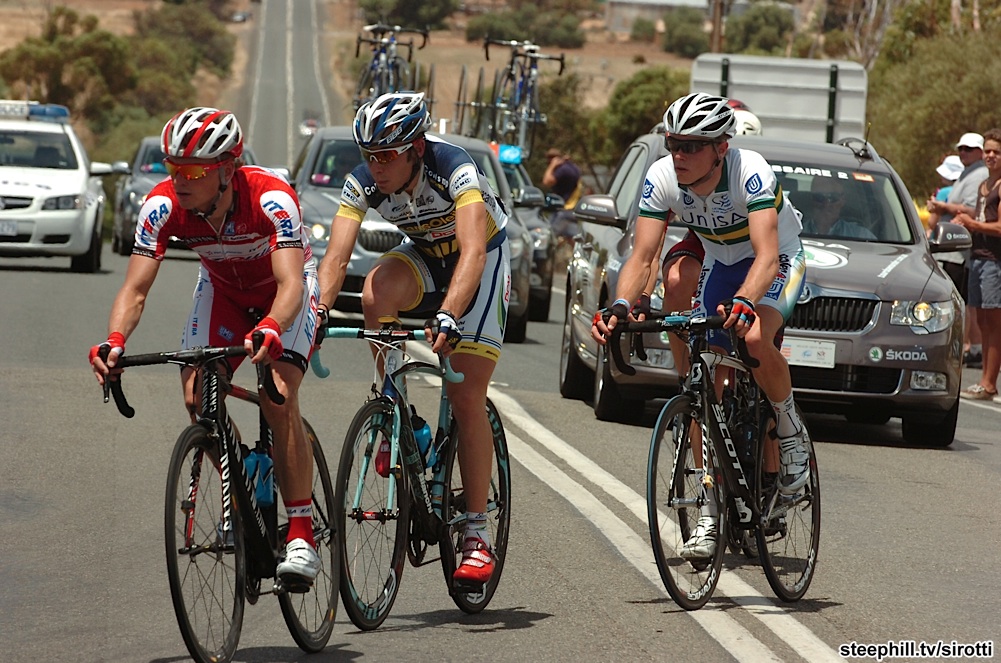 Nhóm đào tẩu gồm Eduard Vorganov (Katusha), Marcello Pavarin (Vacansoleil), Rohan Dennis (Uni Sa)